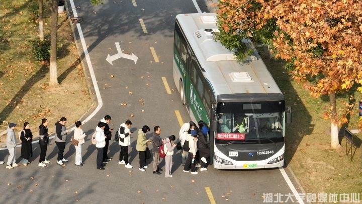 定制公交以绿色为主色调,车身印有湖北大学校名、校徽、校训,彰显我校文化标识。开通首日,师生在公交司机的引导下有序排队乘车。2025级物理学(光学)专业研究生侯顺表示:“定制公交比以往班车价格更实惠,乘坐更舒适,为我们跨校区学习提供了很大便利。此前通勤耗时长、地铁换乘不便的问题得到了很好解决。”