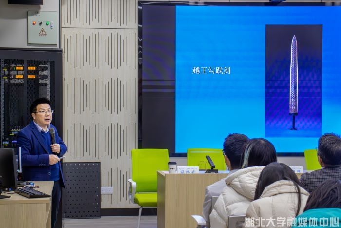 讲座中,蔡路武将专业知识与自身和文物的故事相结合,一幅幅承载着荆楚古韵的文物图片,在大屏幕上逐一呈现,展示了玉器、青铜器、瓷器、漆木器、竹简等各类馆藏文物的特色与价值。此外,他结合国家对文物保护与传承的重视趋势,强调了“让文物活起来”的理念,鼓励师生走进博物馆感受文物魅力。