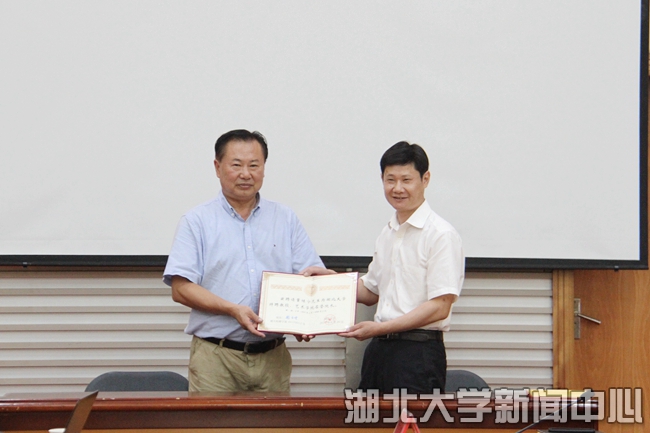 6月20日上午,学校聘任湖北省美术院院长、著名山水画家董继宁教授为艺术学院名誉院长。校党委书记尚钢,校长赵凌云,湖大杰出校友、《美术影响力》杂志主编、“学院空间”研究院院长苏山教授,相关单位负责人和艺术学院师生代表出席聘任仪式。副校长王世敏主持仪式。