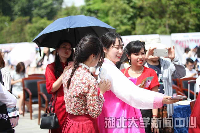 各国师生在会场展示了各具特色的美食、服饰和手工艺等,并先后献上欢乐的文艺表演。不同地区的文化在这里汇聚交融,各国青年的友谊在这里缔结升华,充满独特魅力的异国风情吸引了校内外师生踊跃参与体验。