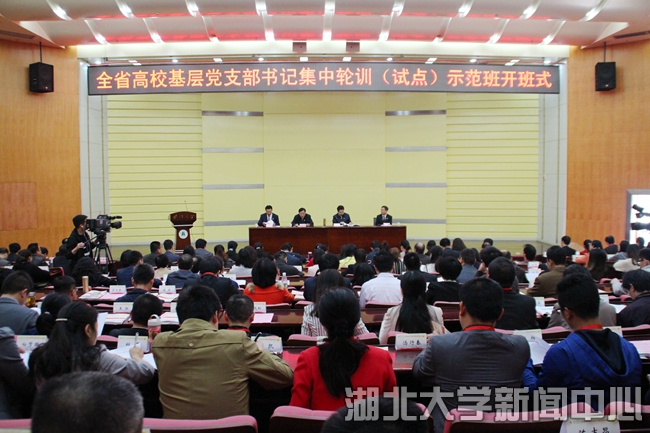 4月13日,全省高校基层党支部书记集中轮训(试点)示范班开班式在校举行。根据中组部工作安排和省委组织部、省委高校工委具体部署,湖北大学和武汉东湖学院被确定为全省高校基层党支部书记集中轮训试点单位,分别承担教师和学生党支部书记培训试点任务。