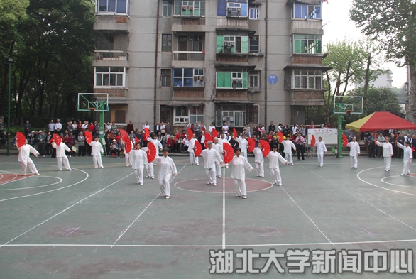 上午8点,老年运动员代表队步伐矫健整齐,高举各单位引导牌,精神抖擞地进入会场。校老年舞蹈队、老年太极拳队的老同志先后带来了《快乐夕阳》和《太极功夫扇》精彩表演,将开幕式推向高潮。