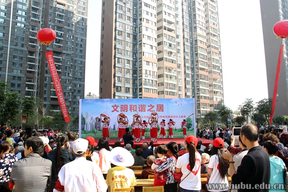 10月17日上午,湖北大学琴园小区内锣鼓喧天、热闹非凡,社区居民们扶老携幼,一大早就来选好位置,在刚搬迁入住的家门口观看 “琴园小区——文明和谐之居”文艺汇演。