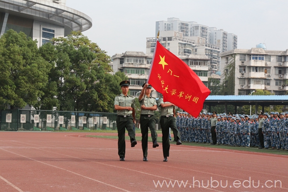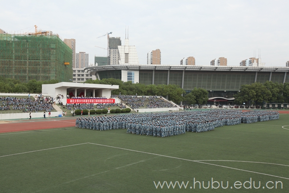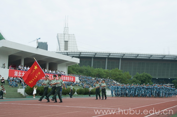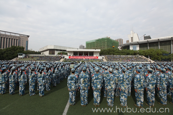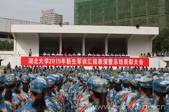 9月29日上午,湖北大学2015年军训汇报表演暨总结表彰大会在二号体育场隆重举行。校领导熊健民、刘国新、顾豪爽、王世敏、杨鲜兰、蒋涛、侯勇,第二炮兵指挥学院政治部主任毕永军少将、学生军训办公室主任李进峰大校、通信系政委燕建田上校、通信系副主任张昆上校,及学校相关职能部门、军训团负责人出席大会。大会由副校长杨鲜兰主持。