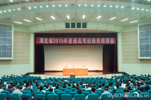 5月27日下午,2015年湖北省普通高考省派巡视员培训会在我校小礼堂举行。湖北省教育厅党组成员、省教育考试院党委书记、院长刘荣山,省教育考试院高考办、高考科科长彭晖出席会议并讲话。省教育考试院副院长黄恩育主持会议。来自武汉大学、华中科技大学、华中师范大学等19所高校及省教育考试院的388名省派巡视员参会。