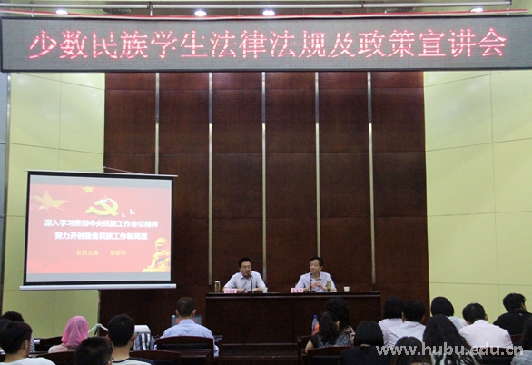 5月15日,湖北省民族宗教事务委员会副主任蔡德坤应邀到我校会议中心思诚厅,给各学院党委副书记和辅导员代表,近百位新疆籍少数民族学生会做了题为“深入学习贯彻落实中央民族工作会议精神 努力开创我省民族工作新局面”的主题宣讲。