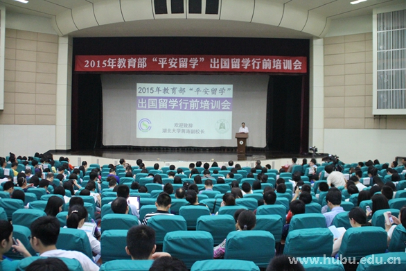 5月18日,2015年教育部“平安留学”出国留学行前培训会在学校小礼堂举行。此次活动由教育部主办,教育部留学服务中心承办,湖北省教育厅和湖北大学协办,来自湖北省内的二十九所高校700多名学生参加此次培训。