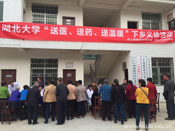为深入推进湖北大学统一战线“爱岗位、献良策、作贡献”活动,大力支持我校“三万”活动工作组在驻地开展“十惠行动”,4月18日上午,农工党湖北大学支部与湖北大学校医院的有关专家和医护人员携带部分医疗器械和常见疾病治疗药品,到英山县石头咀镇张咀村开展了“送医、送药、送温暖”下乡义诊活动。