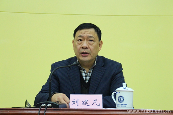 刘建凡从六个方面总结了2014年度学校党委和行政的工作情况。一是加强思想建设,强化理论武装,把牢办学方向,进一步凝聚改革发展共识;二是加强顶层设计,不断完善考评和考核工作,率先完成《湖北大学章程》的制定工作,完成教授委员会的换届工作,深化人事制度改革,进一步深化教育体制综合改革;三是坚持改革驱动,学校内部办学活力不断增强,在人才培养质量、学科专业建设、科研与服务能力、师资队伍水平、办学条件、党建与和谐校园建设等多方面都有了进一步的提升,民生工作、综治工作、保密工作取得新进展;四是通过整改落实、建章立制,学校领导班子能力更加提升、联系群众更加紧密、科学发展更加自觉、制度建设更加完备;五是开展“四风”整治,认真履行主体责任,多措并举,廉政和作风建设成效明显;六是执行民主集中制和干部选任规定。