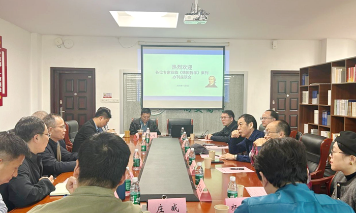 11月5日,湖北大学哲学学院召开《德国哲学》集刊办刊座谈会,湖北大学人文社会科学资深教授江畅、彭富春,华中科技大学哲学学院张廷国教授,武汉大学哲学学院苏德超教授、杨云飞教授,湖北大学哲学学院院长周海春教授等专家学者参加会议。湖北大学哲学学院党委书记刘怀元主持会议。