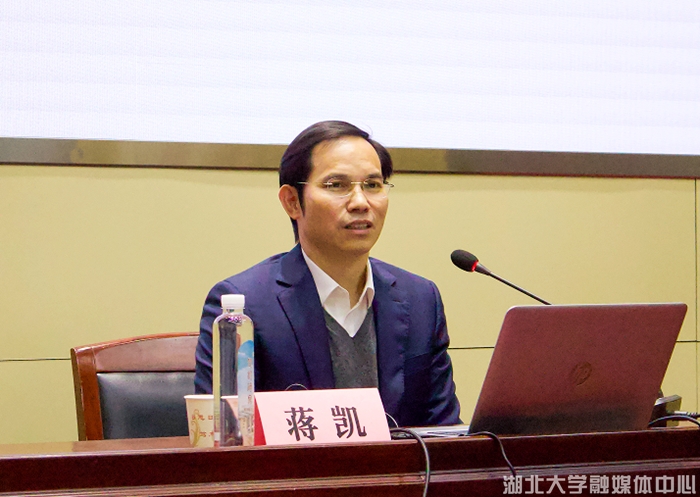 蒋凯教授针对湖北大学教师队伍情况,提出从保障必要科研时间、积极申请纵向科研项目、发表高水平期刊论文、重视国内外学术交流等方面提升教师队伍水平,夯实以师强校的高质量发展之路。