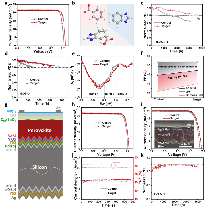 基于此,研究团队通过MBC添加剂,将单结钙钛矿电池效率优化至23.56%,且电池器件展现出23.22%的稳态效率、1300小时的光照稳定寿命以及超过4000小时的环境稳定寿命。最终,研究团队成功制备了基于MBC的钙钛矿/硅叠层电池,效率高达31.57%(经第三方认证为30.24%),稳态功率输出为31.10%,并在户外条件下实现超过4000小时的稳定运行,表现出全球领先的效率与耐久性。该成果不仅为钙钛矿光伏功能添加剂的分子工程提供了新范式,也为叠层电池的规模化应用与产业化发展提供了坚实的理论基础与技术支撑。