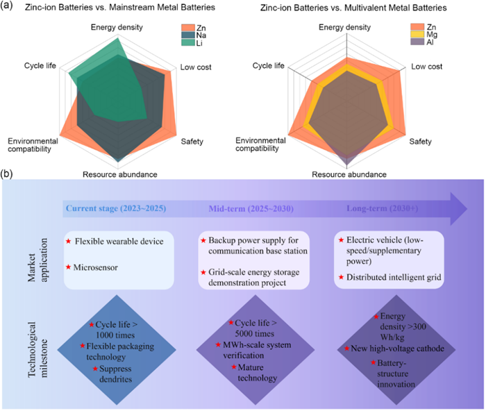 为将水系锌电池从概念推向实际应用,本综述进一步提出未来研究必须突破的四个关键方向。一是深化机制理解:从现象关联到原子尺度洞察。融合先进的原位/工况表征技术与多尺度理论模拟,在原子/分子尺度揭示锌沉积/溶解的动态过程与界面演变规律,厘清热力学与动力学因素的内在耦合机制,为理性设计奠定理论基础。二是发展智能材料:从静态功能到动态响应。突破当前静态功能叠加的材料设计思路,致力于开发具有自修复、自适应响应能力的智能材料体系。三是推进实用验证:从理想条件到苛刻要求。在贴近实际应用的苛刻参数下评估策略的有效性,并系统研究不同优化策略之间的兼容性与协同效应,最终在Ah级软包电池中完成集成验证。四是变革研发范式:从试错探索到智能设计。积极拥抱材料基因组、机器学习与数字孪生等智能研发新范式,构建高质量材料数据库与性能预测模型,加速从材料筛选、电解质配方优化到器件设计的全流程,实现从传统“试错”向“理性设计”的根本性转变。