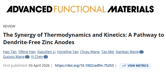 水系锌离子电池因其本质安全性和成本效益,在大规模储能应用中展现出广阔前景。然而,锌金属负极在水系电解质中的热力学不稳定性会引发有害副反应,离子通量不均或电荷传递不佳等会引发锌枝晶生长。基于此,湖北大学新能源与电气工程学院王贤保教授、陈易副教授团队在《Advanced Functional Materials》上发表热力学和动力学协同调控锌沉积的综述论文,助力开发高性能、实用化水系锌电池。