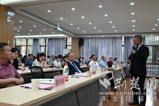 迟福林教授向湖北大学赠送书籍。汪海潮 摄