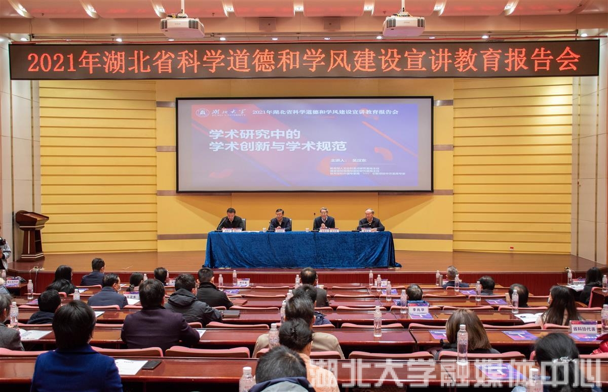湖北日报讯(记者韩晓玲、通讯员吴珊、丁诗敏)12月14日,2021年湖北省科学道德和学风建设宣讲教育报告会在湖北大学举行。著名法学家、中南财经政法大学文澜资深教授吴汉东围绕“学术研究中的学术创新与学术规范”这一主题,为师生代表作报告。